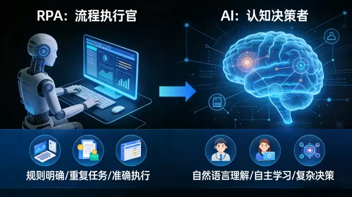 总而言之,RPA与AI,一个精于执行,一个善于思考。它们本质的不同,恰恰构成了完美的互补。两者的深度融合,早已不是未来构想,而是正在发生的现实,为企业流程自动化开辟了前所未有的创新空间。