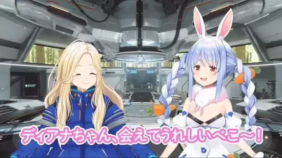 整个联动视频的构思相当巧妙,紧扣游戏背景展开。故事从兔田佩克拉抵达月球基地、与戴安娜相遇开始。视频全程采用日语录制,贴心地提供了英语配音版本,照顾到了全球各地的观众。两人的互动过程,简直像极了一场粉丝见面会,氛围可爱又轻松。兔田佩克拉坦言,自己已经玩了一段时间的《识质存在》,一直觉得戴安娜非常可爱,对这次合作期待已久,尤其高兴能在戴安娜的“主场”——月球上相见。
