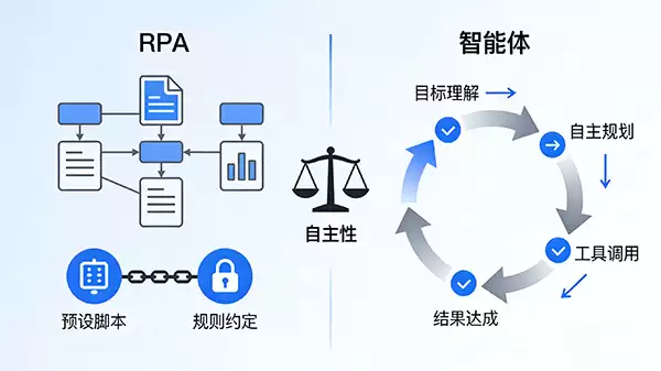 Q1:智能体与传统RPA(机器人流程自动化)的根本区别是什么?