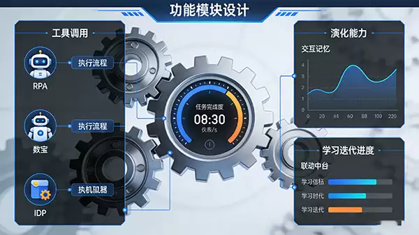 规划得再好,最终也得落地执行。智能体的“手”和“脚”,就是它所能调用的各类工具。一个成熟的智能体平台,其背后往往连接着一个丰富的工具生态:RPA(机器人流程自动化)负责模拟点击、录入等标准化操作;IDP(智能文档处理)负责从各种格式文件中提取关键信息;还有各类业务API、数据分析工具等。智能体像一个交响乐指挥,能够根据任务需求,精准地调配不同的“乐器”(工具),确保流程顺畅进行。