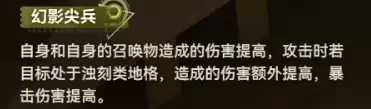 被动技能【幻影尖兵】是这把武器的精髓所在。效果是:自身与召唤物造成的伤害提升;若目标处于浊刻类地格上,还能获得一段额外的伤害加成,暴击伤害也随之提高。乍看触发条件似乎有些复杂,但放到米蒂尔的战斗节奏里,其实并不算苛刻。米蒂尔本就擅长布置场地,浊刻地格在她的战术体系里属于常规操作,几乎不需要额外费心去创造条件。