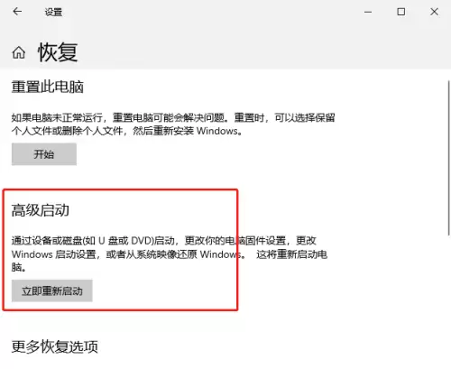 第四步:这时,在右侧“高级启动”栏目下,你会看到一个“立即重新启动”的按钮。直接点击它。