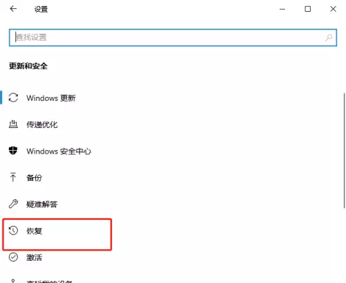 第三步:在“更新和安全”设置的左侧栏中,选择“恢复”选项。