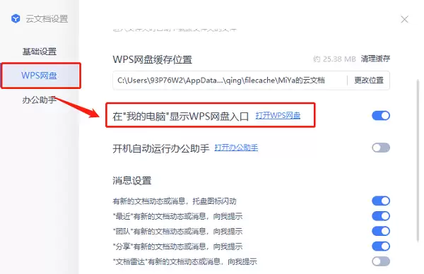 方法一:从WPS云空间设置中关闭