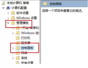 2. 编辑器窗口打开后,在左侧目录树中,找到并展开 **“管理模板”**,接着点击其下的 **“控制面板”** 选项。