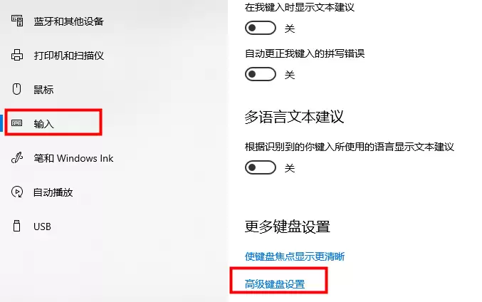 接下来,在左侧菜单栏中选择“输入”,目光移向右侧面板,你会看到“高级键盘设置”的选项,点击它。