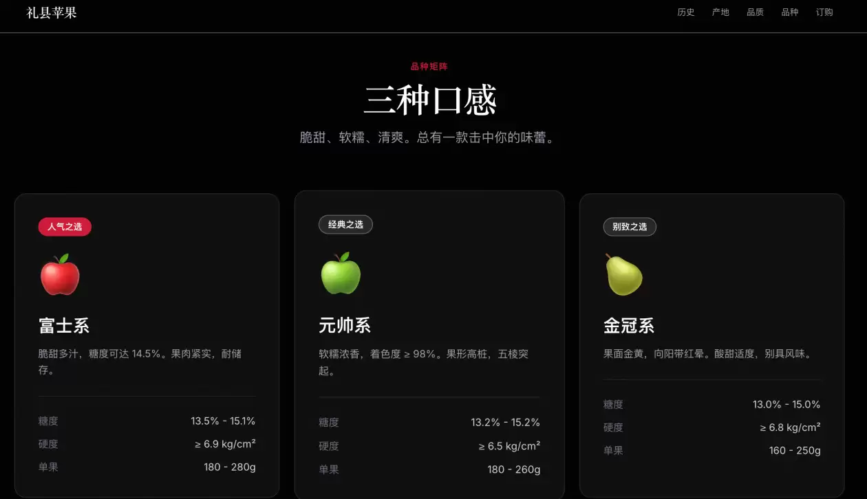 “我给它的指令其实很简单——设计一个介绍甘肃礼县苹果的网页,要结合当地悠久的历史。”白亚龙回忆道,“结果它把1952年引进苹果、1973年成为外销基地、2008年成为奥运果品,这些时间线全给梳理出来了。连广告语都帮你拟好了——‘每一口都是自然的馈赠’。”