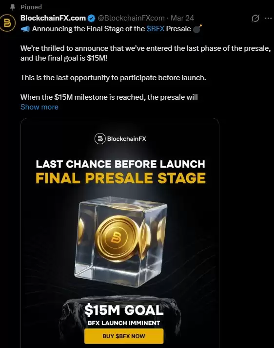 BlockchainFX预售接近1500万美元软顶,最终倒计时开始