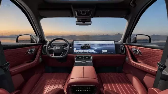 核心的升级在于感官层面。车内启用了专属的星云红高定配色,门板上采用了全新的“星河浅浪”饰纹。而顶棚则覆盖了翻毛皮手感的“柔云顶棚”,触感细腻柔和,用官方的话说,能做到“夏季不吸汗、冬季不冰脸”,这对座舱的豪华质感与乘坐舒适性确实是实打实的提升。当然,星空天幕也继续提供,营造氛围感是一把好手。