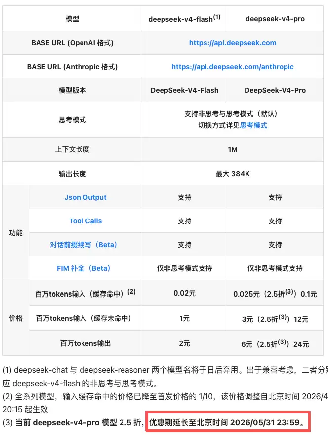 DeepSeek-V4-Pro API 优惠期延长至5月31日