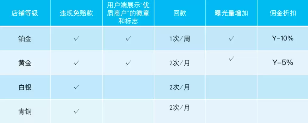 除了流量优势,高等级店铺在“钱”的方面也有实在的优惠。一方面,回款周期会加快,资金能更快回到手里;另一方面,平台还会提供直接的用金减免:铂金店铺能享受Y-10%的折扣,黄金店铺则有Y-5%的减免。可别小看这几个点,它直接降低了每笔交易的成本,对于提升资金利用效率和整体利润率来说,效果非常明显。