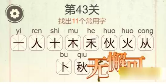 《聪明开局吧》第43关秋找出11个常用字攻略