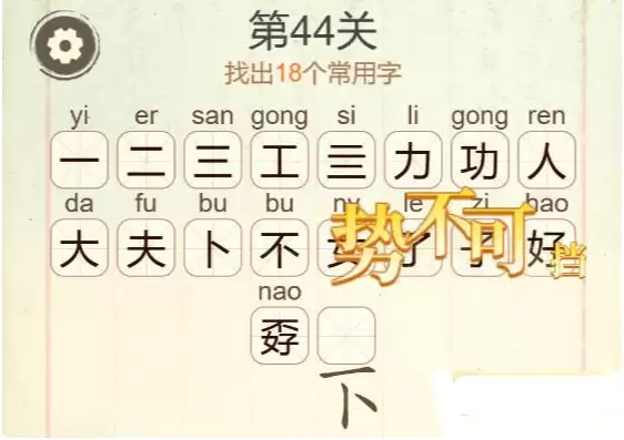 以上便是《聪明开局吧》第44关“功夫不好”找出18个常用字的详细攻略。希望这份拆解思路能帮你顺利过关。想获取更多关卡攻略,记得持续关注本站的更新!
