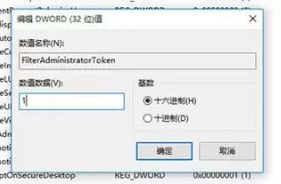 定位到“System”项后,将目光转向右侧的列表。在这里找到名为【FilterAdministratorToken】的DWORD值,双击它,将其数值数据从默认的0修改为【1】,然后点击【确定】。