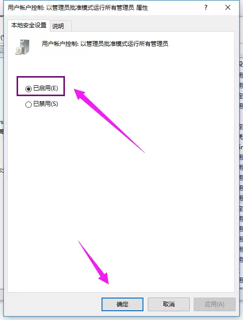 在弹出的属性窗口中,切换到【本地安全设置】选项卡。你会看到两个单选按钮,这里的关键操作是:勾选【已启用】。完成选择后,点击底部的【确定】按钮保存设置。