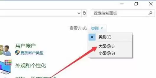 第二步:切换视图模式。控制面板窗口打开后,注意看右上角。点击“查看方式”旁边的下拉菜单,从弹出的选项中选择“大图标”。这个操作能让所有设置项一目了然。