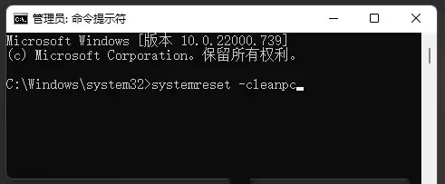 首先,输入命令 systemreset -cleanpc 并回车,这会直接启动系统重置界面。