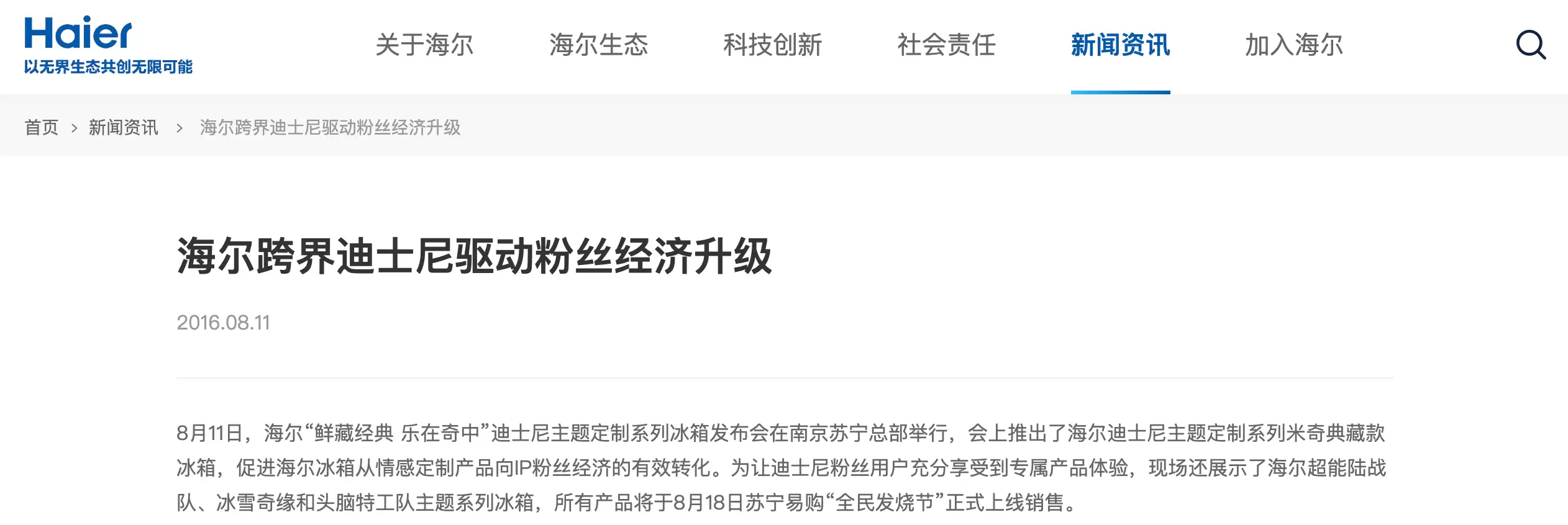 然而,这类用户的数量极其有限。与家电市场数亿家庭的存量基数相比,他们只是小众中的小众。家电联名这条路,早就有人走过。迪士尼的米老鼠上过冰箱,十年前海尔也推出过“鲜藏经典 乐在奇中”系列,凭借强大的渠道和品牌势能,最终销量也只能用“差强人意”来形容,尽管营销声量确实拉满了。事实是,截至目前,还没有任何一个品牌或产品,能真正依靠IP联名在家电领域做成大规模生意。这不是IP不够强的问题,而是家电品类的决策权重分布使然。
