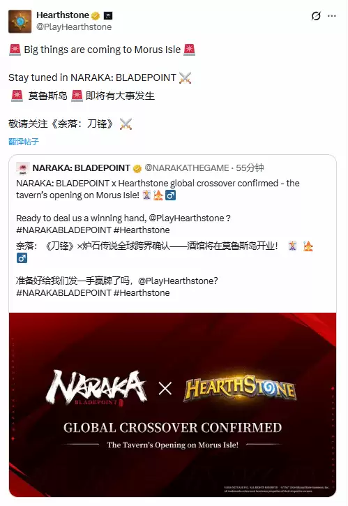 4月1日,国产动作竞技大作《永劫无间》海外官方账号今日发布震撼消息,宣布将与暴雪旗下经典卡牌游戏《炉石传说》开启全球联动。