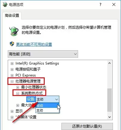 5. 最后,在弹出的高级设置窗口中,展开“处理器电源管理”选项。在其子菜单中找到“系统散热方式”,点开它,就能看到“主动”和“被动”两种模式供你选择了。确定好想要的散热方式,点击“确定”保存,设置就立即生效了。