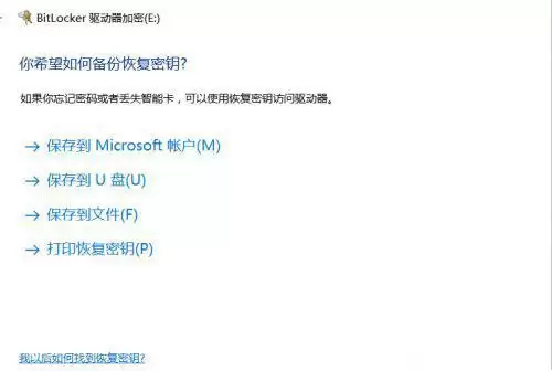 密码设好,还没完。为了防止哪天忘记密码打不开磁盘,系统会强制要求你备份一个恢复密钥。它提供了几种保存方式,比如保存到Microsoft账户或打印出来。从便捷性考虑,“保存到文件”是个不错的选择,它会生成一个文本文件让你存放在安全的地方。