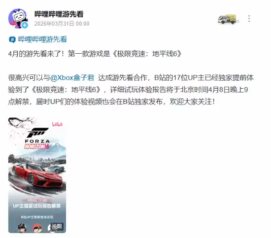 《极限竞速:地平线6》媒体试玩开启,B站UP主阵容抢先看
