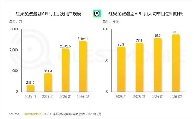 最新行业数据揭示了数字内容消费市场的关键动向。根据QuestMobile于2026年2月发布的统计报告,免费漫剧和短剧赛道正呈现出强劲的用户粘性与显著的增长势头,成为当下最受关注的内容领域之一。
