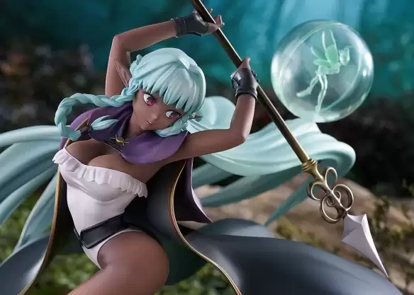 细致观赏,其精妙设计令人赞叹。角色面部神情坚毅专注,身体姿态呈现优雅而有力的S形曲线,巧妙平衡了战士的刚毅与女性的柔美。手中高擎的长枪指明了冲锋轨迹,而飞扬的金发与剧烈翻卷的披风,则在三维空间中塑造出强烈的纵深与动势,极具临场感。细节刻画更是毫不含糊:服饰上精致的荷叶边与繁复纹路清晰呈现,长枪的金属质感与磨损细节被高度还原。尤为惊艳的是,手办特别加入了萦绕于角色周身的半透明特效件,模拟出灵动的妖精伙伴,为整个战斗场景增添了一抹梦幻而神秘的色彩。