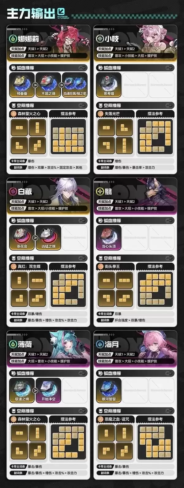翳:速切爆发型角色,破盾能力优秀,非常适合融入速切队体系。不过在当前版本,她的辅助功能价值暂时高于其作为主C的潜力。