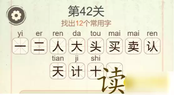微信小游戏《聪明开局吧》的第42关,确实让不少朋友卡住了。这一关的目标很明确:从“读”这个字里,找出12个常用汉字。最终的答案是:一、二、人、大、头、买、卖、认、天、计、十、读。听起来有点复杂?别急,只要掌握由简到繁、左右分拆的顺序,再细心一点,通关其实并不难。