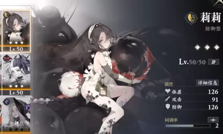 那么,从小在父亲病态控制下长大的莉莉,在游戏中又是怎样的存在呢?从她的角色立绘就能窥见一二:周身环绕着诡异的黑色眼珠,上面还沾染着血迹与利齿,视觉上就充满了压迫与不安。这种成长环境导致莉莉几乎丧失了自我主体意识,她甚至会习惯性地渴望他人对她下达指令。作为来自混沌界域的SSR稀有度角色,莉莉定位为防御型,可以通过角色限定活动或常驻卡池获取。她的面板数据相当亮眼,防御与体质属性极高,攻击力也毫不逊色。战斗时,她的技能“狂气爆发·淤泥上的不灭之花”堪称核心:能为自己施加基于防御力36%的护盾,并恢复忍耐层数10%的生命值,随后清除所有忍耐状态。这里有个关键机制:在“忍耐”状态下,莉莉每损失1点生命,都会累积1层忍耐。