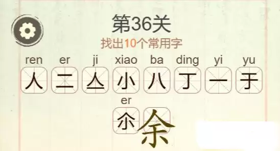 《聪明开局吧》第36关:从“余”字中找出10个常用字