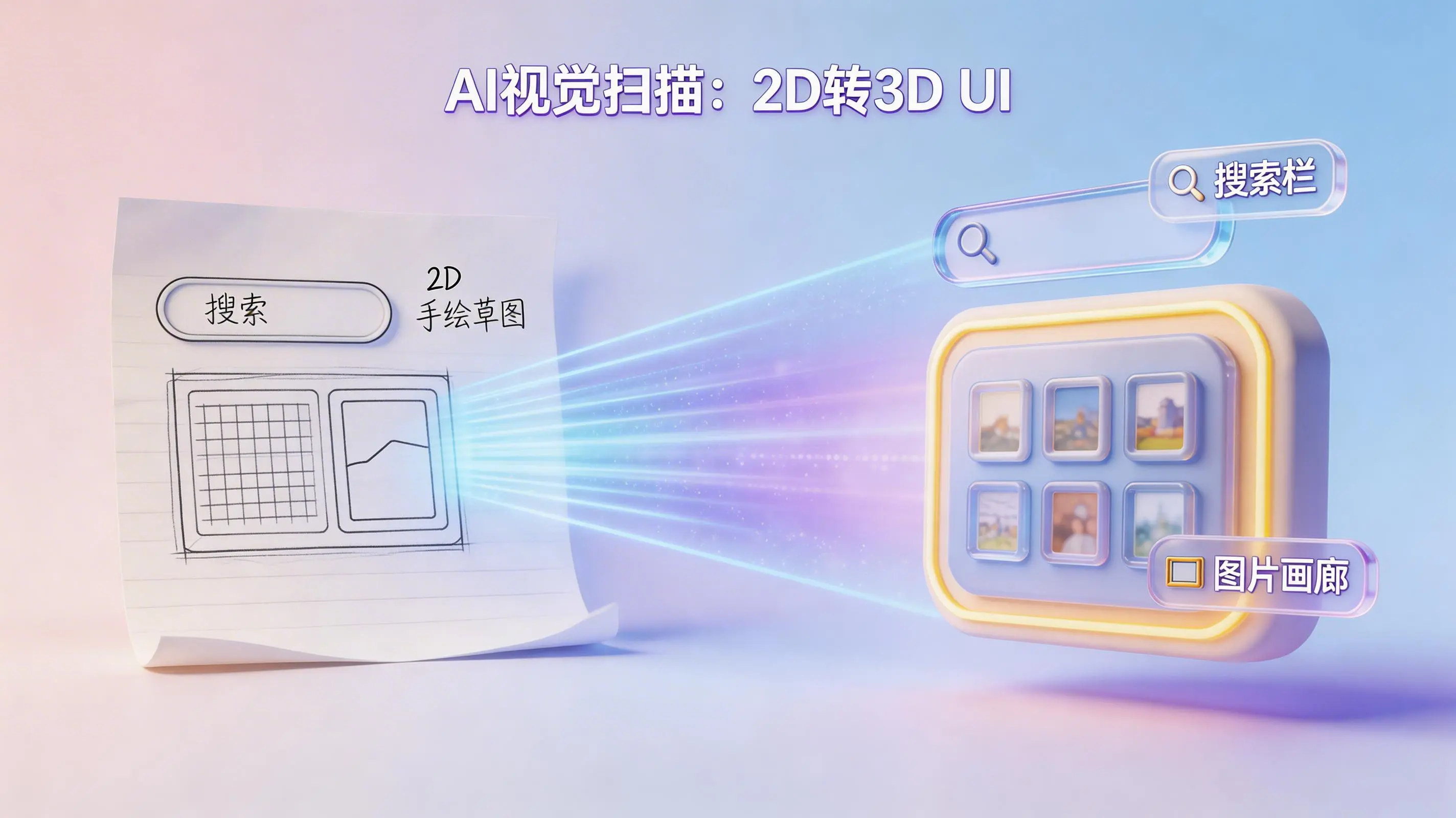 举个例子,当你上传一张画着几个方框和奇怪图标的草图时,AI的思考路径是这样的:那个带放大镜的矩形框,大概率代表“搜索栏”;旁边几个等距排列的方框,很可能是一个“图片画廊”。这一步的厉害之处在于,它跳过了单纯的像素分析,直接指向了功能意图的识别。简单说,它的任务就是把二维平面上看似随意的线条,翻译成机器能理解的“业务功能模块”清单,为后续的结构化构建打下基础。