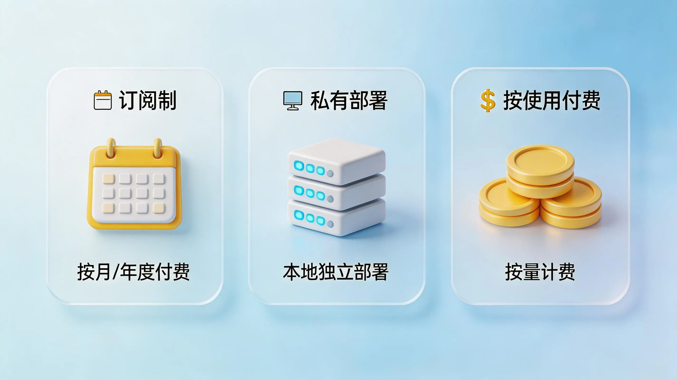 想看清“实在Agent”这类产品的定价,不妨先了解市场上通行的几种“游戏规则”。不同的收费模式,对应着不同的企业体量和部署需求,各有千秋。