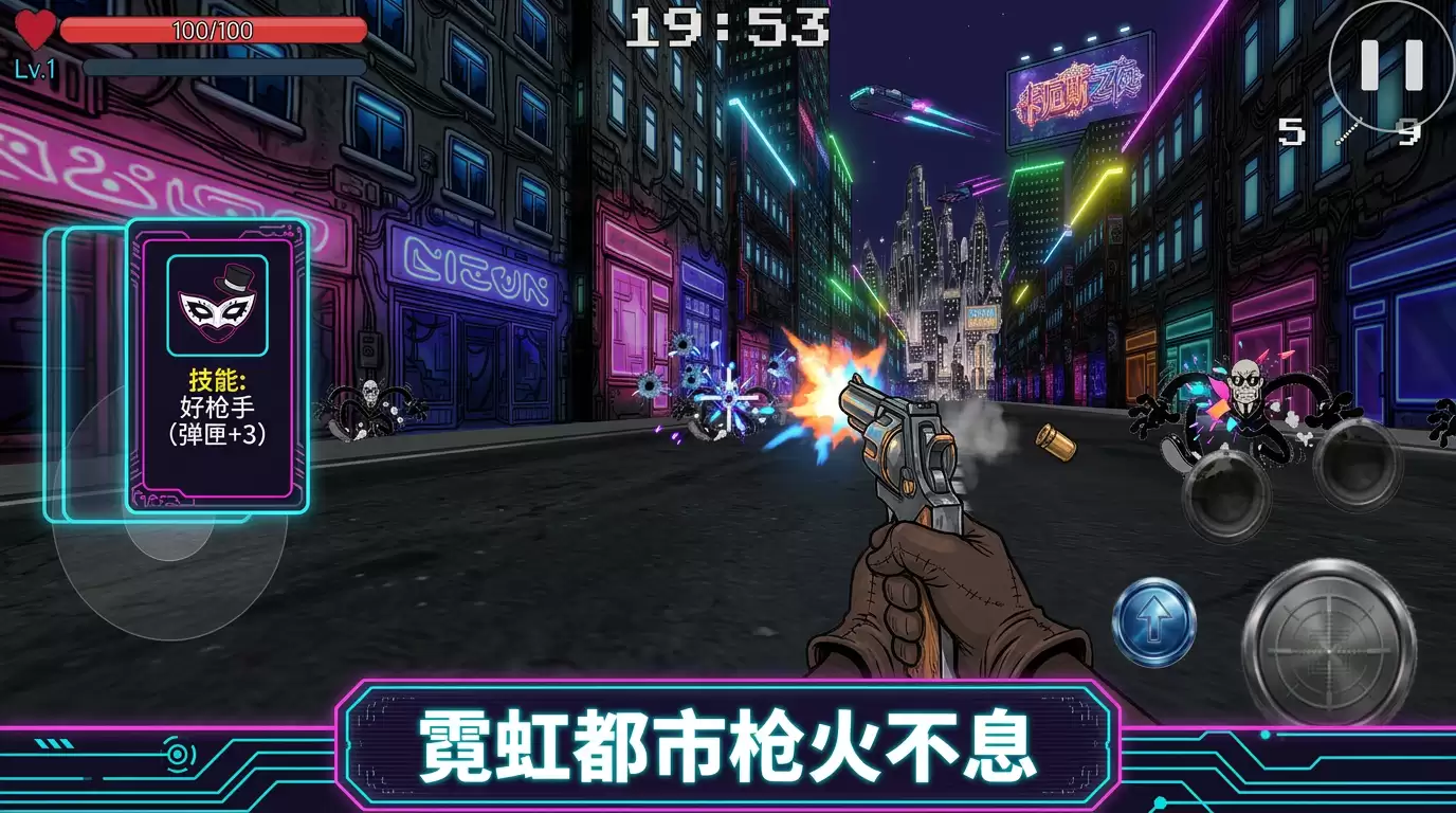 简单来说,《卡厄斯之夜》是一款将几种流行元素巧妙融合的作品。它采用了经典的Doom视角,让你沉浸在霓虹闪烁的都市夜晚;核心玩法则借鉴了《吸血鬼幸存者》式的爽快割草与Roguelike成长;而独特的美术风格,则让人联想到复古的橡皮管动画,充满个性。