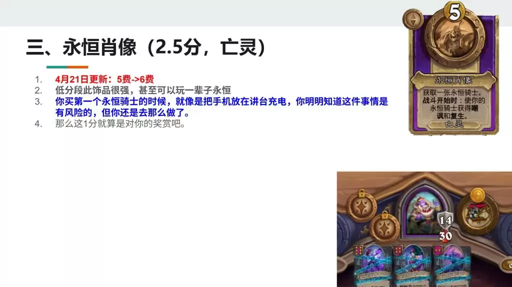在游戏前期,比如四、五费回合,你的铸币非常紧张。这时候把宝贵的铸币锁死在肖像里,可能会直接导致你当回合无法刷新酒馆或购买关键随从,从而影响场面强度,导致掉血。除非你场面已经稳赢,有闲钱投资未来,否则前期使用需要非常谨慎。可以说,前期它是个“奢侈品”,用不好就是拖累节奏的负担。