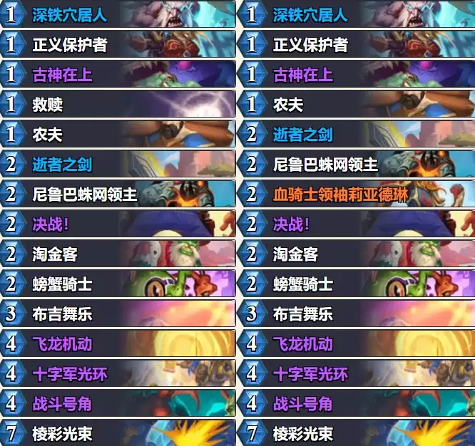 不过仔细一看,这次构筑天梯的改动幅度并不大,真正挨刀的卡牌只有两张:先觉蜿变幼龙和圣骑士的飞龙机动。
