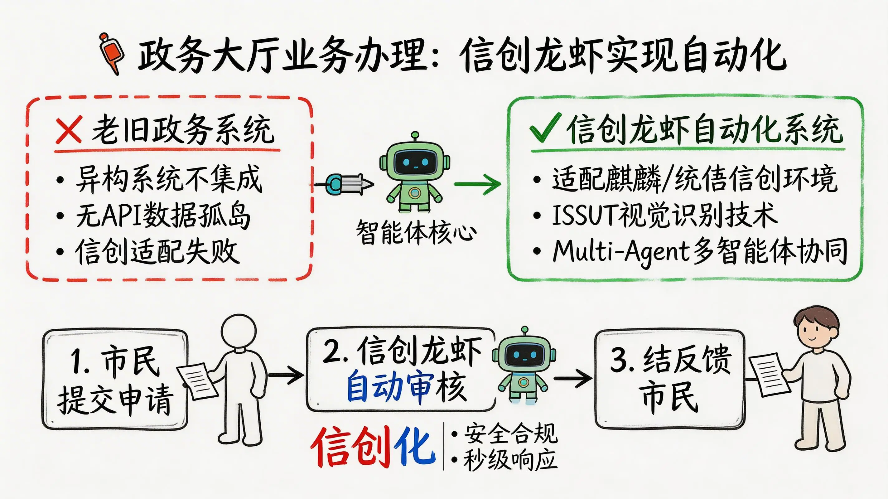 一、政务大厅自动化:为什么说“信创龙虾”是破局关键?