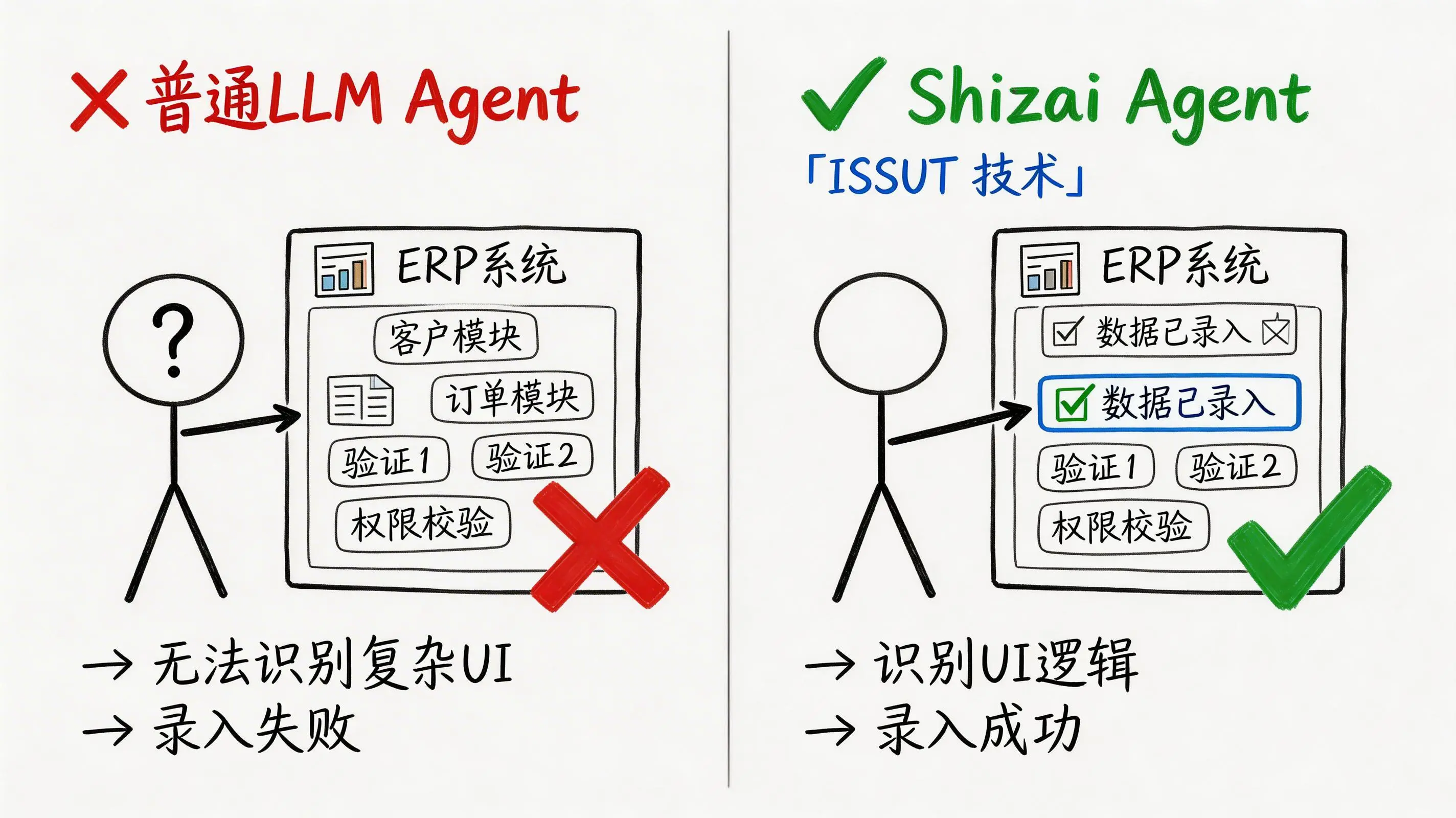现实情况是,大量企业的核心业务依然运行在老旧的ERP、OA或财务系统上,这些系统普遍缺乏标准的现代化接口。依赖API的智能体在此类场景前几乎寸步难行。而通过ISSUT技术,实在Agent无需推动昂贵的系统改造,就能直接实现自动化操作,真正覆盖了那些大量普通智能体无法触达的真实业务痛点。