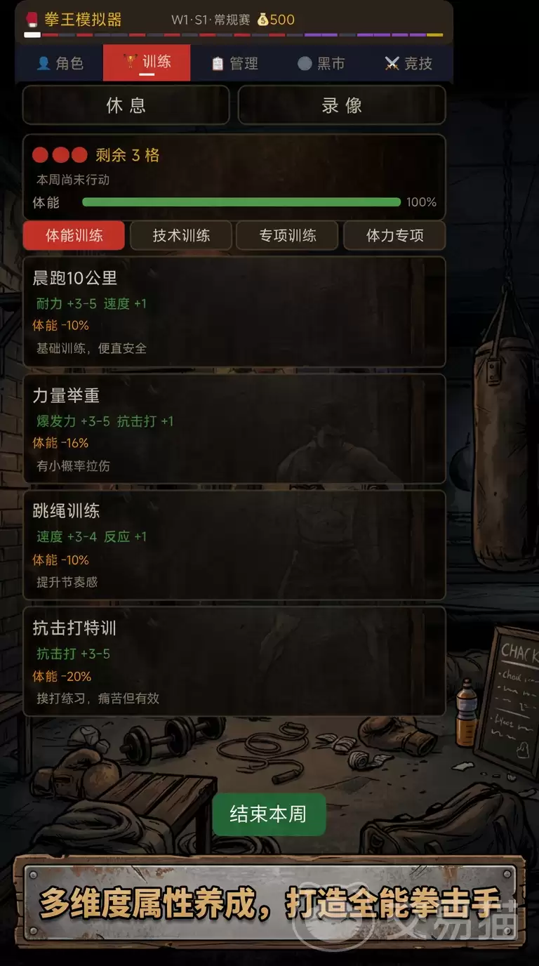选好级别,接下来是塑造你的战斗风格。游戏提供了差异化的天赋系统,比如侧重爆发力与重拳杀伤的“暴徒型”,或者兼顾反应、协调与稳定性的“均衡型”。这需要你结合自己的操作习惯和长期目标来抉择。完成这些基础设定,真正的挑战就开始了——游戏采用赛季制养成体系,每个赛季持续20多周。时间资源非常紧凑,如何统筹安排训练、比赛、恢复和各项事务,是实现高效成长的核心课题。