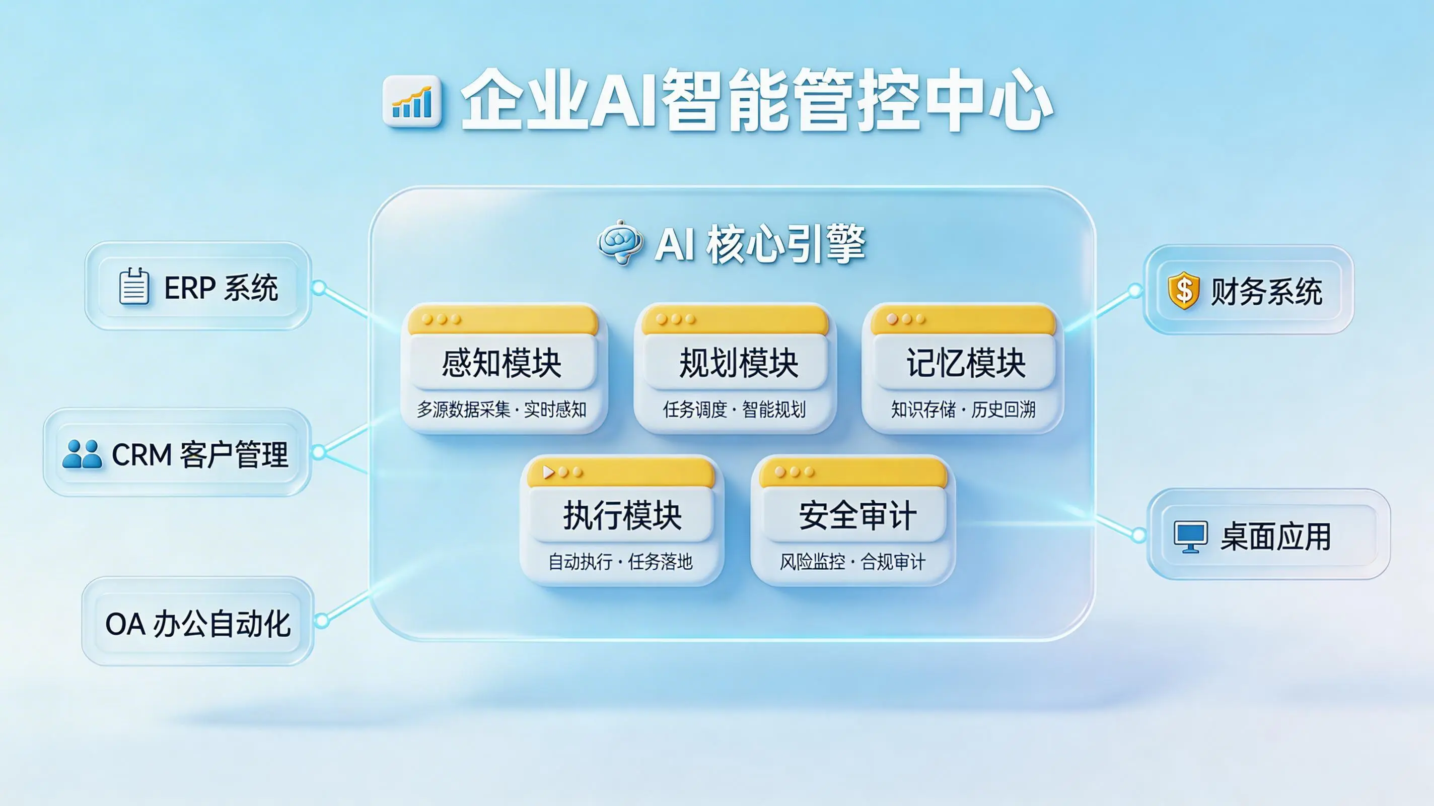 所以,它绝不是一个单纯的大模型对话框,也不是只会照固定脚本点点按按的软件机器人。更准确的定义是:一个由“感知、理解、规划、执行、记忆、反馈”这六大能力环节环环相扣构成的业务执行系统。最终目标很明确:在预设的安全边界内,完成实实在在的工作。