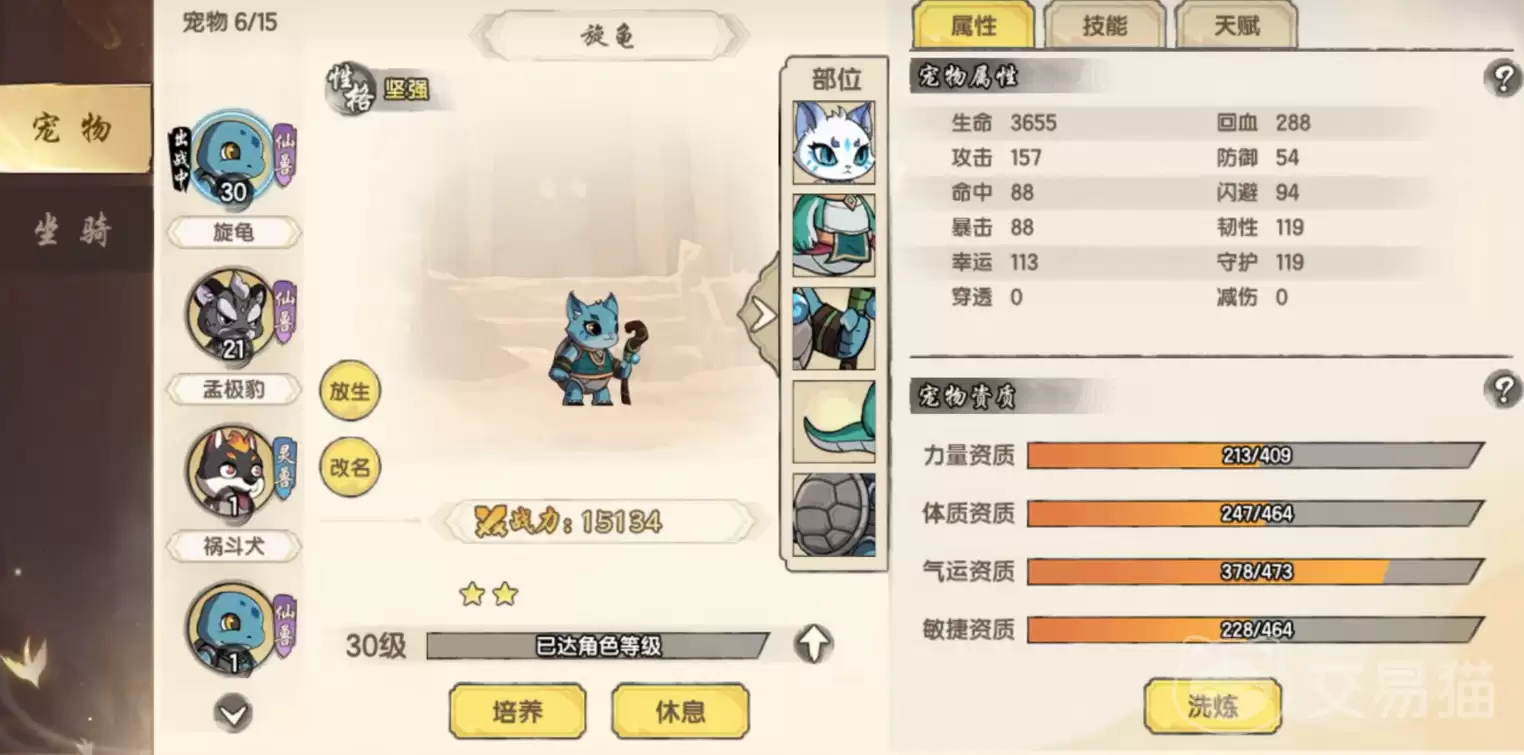 灵宠系统是开荒期不可忽视的战力放大器。森林区域开放后,就可以使用天煞葫芦进行捕捉。宠物资质分为凡、良、优、绝四档,初期应集中资源培养“优”或“绝”资质的个体。不同的灵宠拥有差异化的辅助能力:有的能提升角色攻击力,有的能增强防御韧性,还有的具备眩晕、减速等实战控场效果。选择一只与自身角色输出节奏相匹配的灵宠(例如牛魔王搭配增防型,孙悟空搭配加速型),能显著提升副本的通关效率。