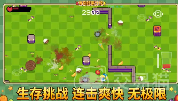 本作的设计思路非常明确:摒弃繁复的操作逻辑,聚焦于节奏明快、反馈直接的“割草”式体验。玩家扮演的嗒啦啦,将在随机生成的关卡中持续斩击各类水果,并收集掉落的果汁资源。真正的策略点,在于每次角色升级时系统提供的技能强化选项。你是选择强化清屏攻击,提升AOE覆盖率来应对人海战术?还是专注单点突破,增强爆发效率来对付精英怪?或者,优先提升移动速度来优化走位容错,甚至加厚护盾值来延长生存时间?不同的路径组合,会显著影响你的战斗风格,从而形成一套高度个性化的成长体系。