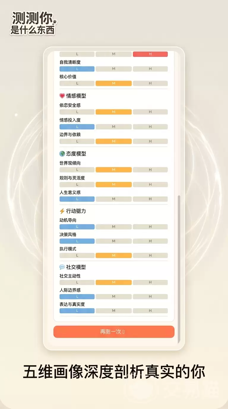 它的题库内容也很有意思,聚焦于日常生活里的各种小情境,题目以开放式选择题为主。这里没有标准答案,不考验逻辑推演,更看重你的直觉反应和当下心境,极大地强化了个体表达的随意与自由。