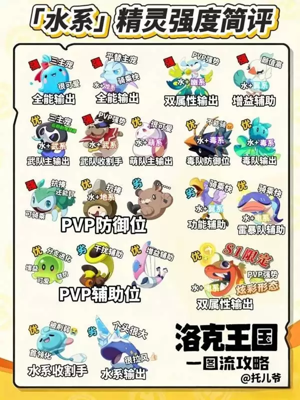 至于其他没提到的水系精灵,特点可能不那么鲜明,大家可以参考下方的图片自行了解。