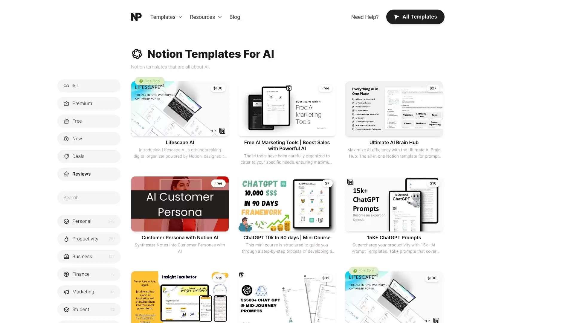 Notion Templates For AI- 提供Notion模板、封面、图标和工具以提升生产力的平台