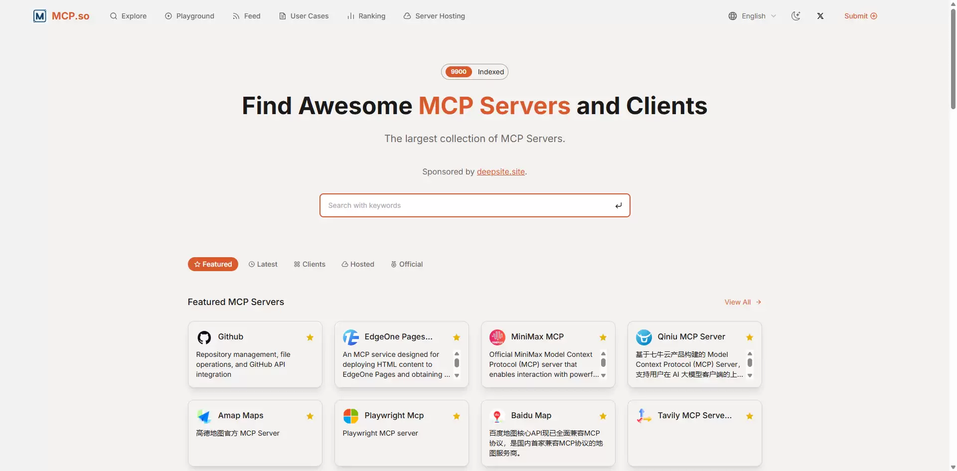 使用起来相当直观。所有操作都可以在 mcp.so 这个官方网站上完成。用户可以直接在站内进行搜索,或者通过浏览“精选”、“最新”、“官方”以及“创新”等分类栏目,来发现感兴趣的服务。平台的设计思路,就是降低发现门槛,让好工具能被更多人用上。