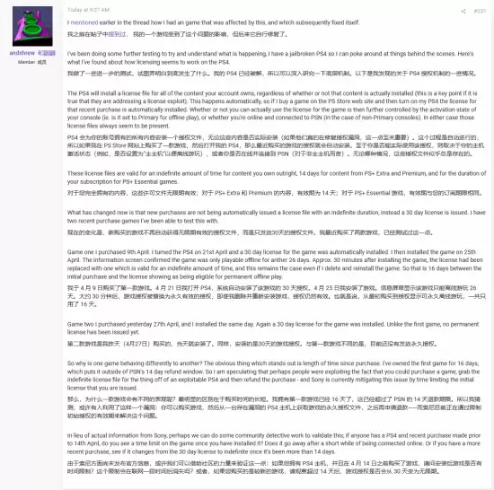 为何两款游戏待遇不同?最明显的区别就在于购买时间的长短。第一款游戏购买已超过16天,而索尼PSN的标准退款期限是14天。由此,一个合理的推测浮出水面:或许存在这样一种漏洞利用方式——玩家购买游戏后,从可破解的PS4中提取出无限期授权文件,随后立即申请退款。而索尼现在通过设置30天的初始授权冷静期,正好覆盖了退款窗口,从而有效堵住了这个漏洞。