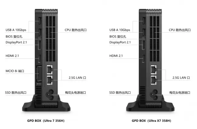 处理器方面,GPD BOX提供了两个版本可选:酷睿Ultra 7 356H和更强劲的Ultra X7 358H。