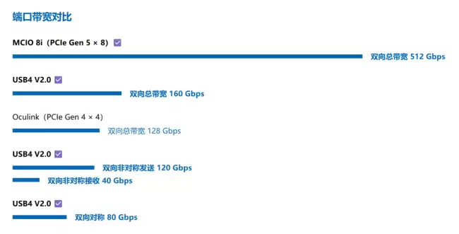 MCIO可以看作是PCIe接口的一种进化形态,原生就支持PCIe 5.0甚至6.0协议。这个版本提供的MCIO 8i(PCIe 5.0 × 8)端口,理论带宽能达到目前迷你主机常用的Oculink(PCIe 4.0 × 4)接口的4倍。这意味着,它为外接高性能显卡坞或组建极速存储阵列,铺平了道路。